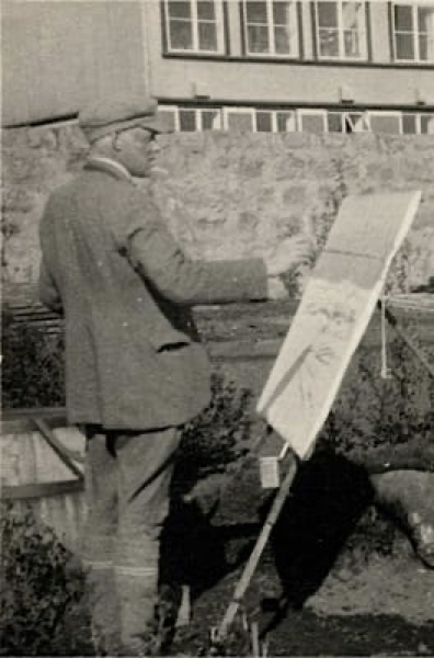 When he was just four years old, Jóhannes Sveinsson left Meðalland and went to live in Borgarfjörður in the Eastfjords, where he was fosterd by Jóhannes Jónsson and his wife, Guðbjörg Gissurardóttir. Jóhannes was Kjarval´s uncle on his mother´s side. In Borgarfjörður, Jóhannes reached adulthood by doing various traditional jobs and he also painted frantically in his leisure time. It was considered a point of his peculiarity that he was: „…always crafting and tinkering and painting“. Luckily, his cousins understood his talent, and when he was young they gave him dye used for wool to paint because, at that time, paper and drawing pencils were rare. But he managed to come by paper and pencils, and in time, his talent was recognized. People who were immigrating to America during those years asked him to paint their farms to have something precious to remember. Oftentimes, he would lie by the cabbage fence and paint the splendid sailboats entering the fjord.
